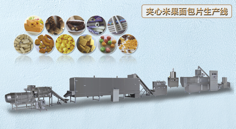 膨化小食品生产线 夹心米果面包片生产线 玉米片谷物生产线 营养米粉生产线 人造米生产线 大豆花生蛋白生产线 粟米条奇多生产线 油炸食品生产线 锅巴沙拉条生产线 燕麦巧克力生产线 妙脆角三角片生产线